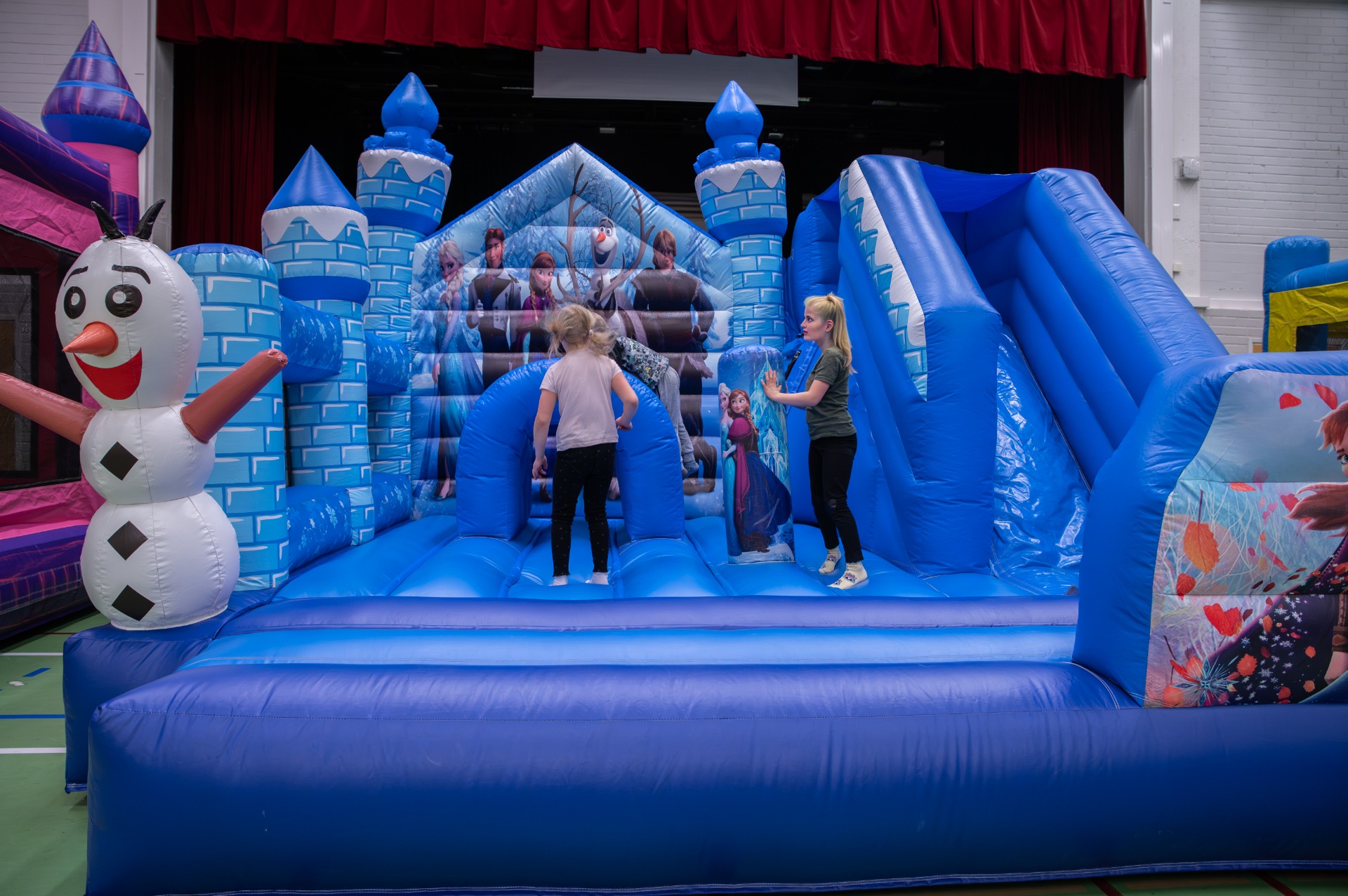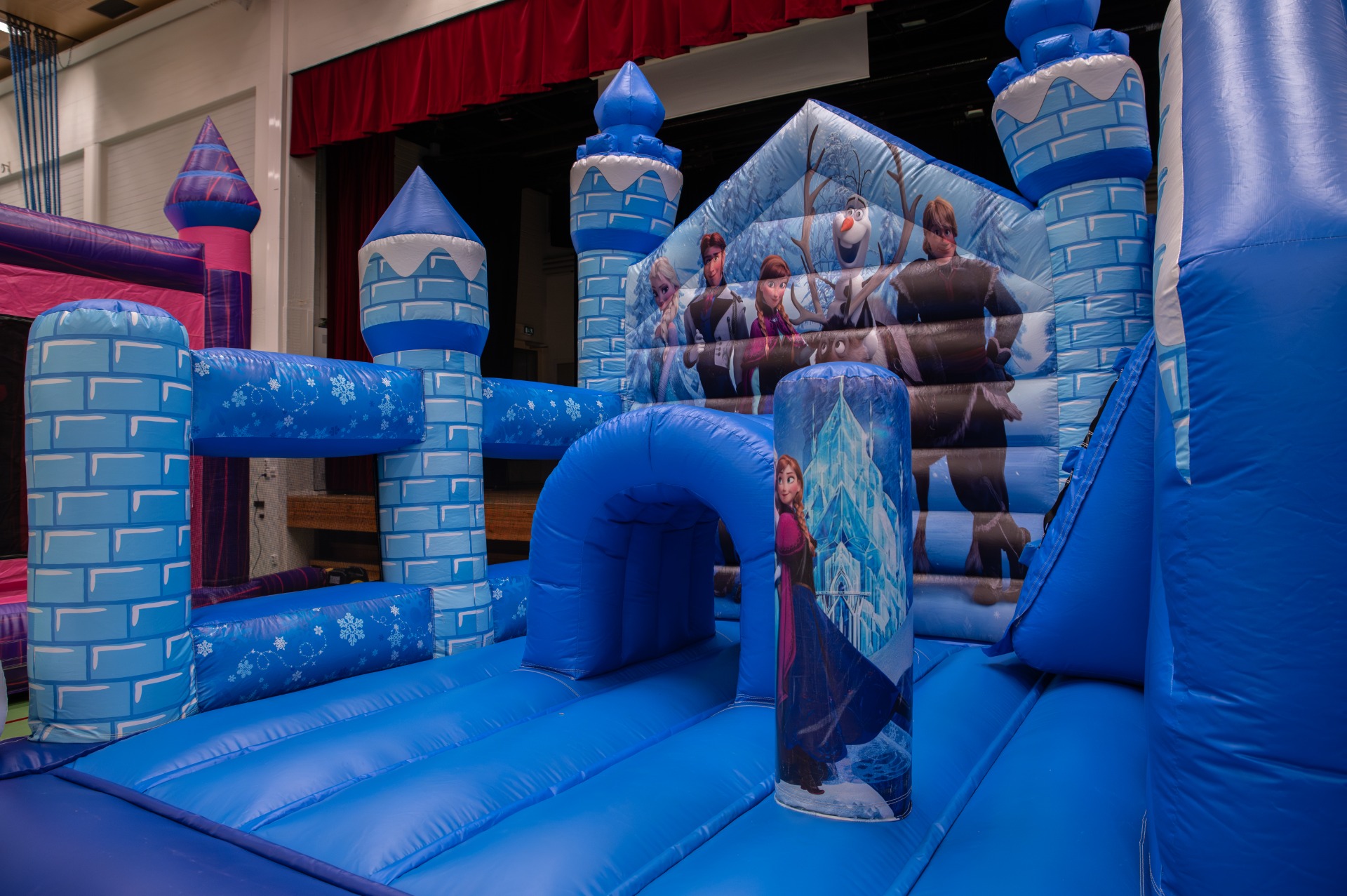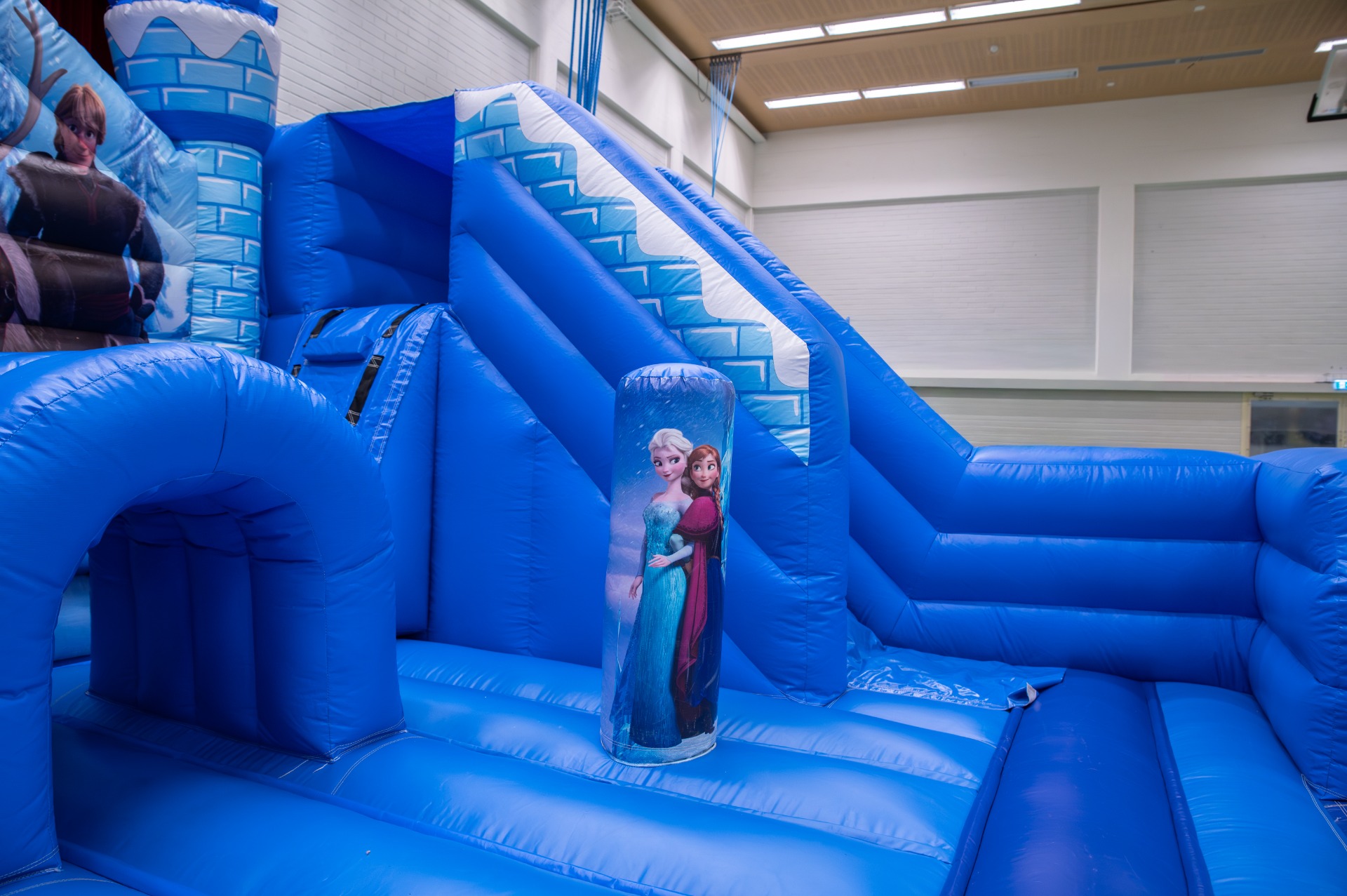 Anna, Elsa ja Olaf kutsuu sinua pomppimaan heidän jäälinnaansa. Frozenpompusta löytyy tilaa pomppia ja tietysti liukumäki. Tämä on helppo ja nopea pystyttää ja siksi onkin oivallinen vaikka omaan kotipihaan synttärikutsujen vetonaulaksi.