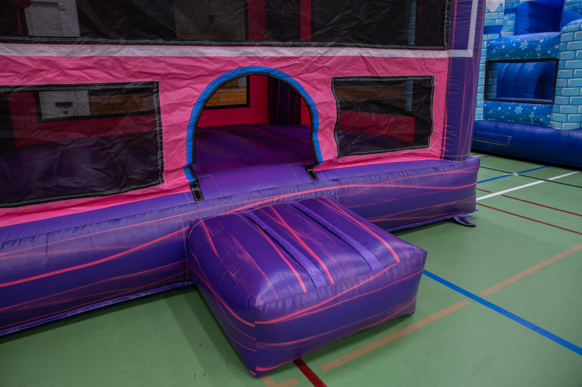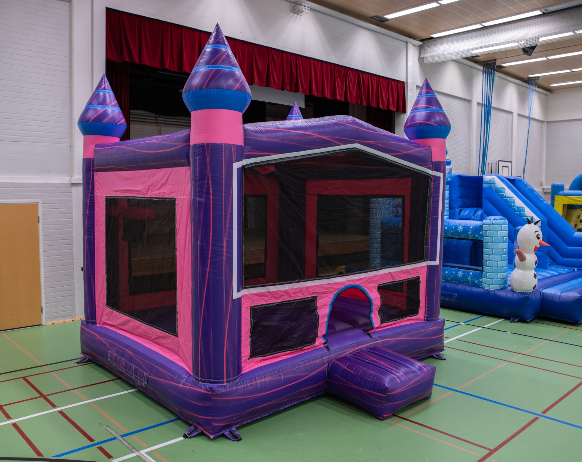 Lilan linnamme tornit kohoaa kohti korkeuksia ja kutsuvat pomppimaan. Tässäkin linnassa löytyy katto pään päällä, joka suojaa sateelta. Omatoimivuokraajalle helppo kuljetettava ja nopea pystytettävä.